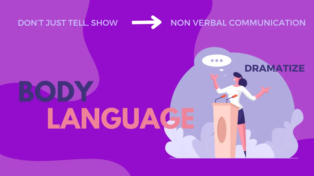 Naturally, we use our bodies when speaking. More than 70% of our communication is nonverbal. So speaking without body language is not only robotic but also fails to communicate effectively. That’s why your body language can reinforce your message or undermine it if not used effectively. Maintain an open posture, avoid crossing your arms, and use purposeful movements to emphasize key points.